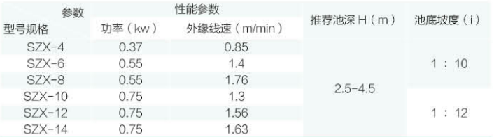 工作原理:SZX 型中心傳動濃縮機采用蝸輪蝸桿(<φ8m 可采用擺線針輪減速機,>φ14m 采用中心回轉(zhuǎn)齒輪)傳動,刮泥壁上設計有縱向攪拌柵條,刮臂旋轉(zhuǎn)時柵條起攪拌作用,加速活性污泥的下沉,刮泥板外緣線速度≤3m/min。整個刮泥機構(gòu)可以手動提升400mm (用擺線針輪減速機不可以提升)。